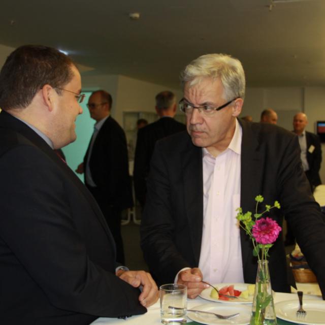 schönen Felix-Klein-Hörsaal des neuen Paulinums geladen. Staatssekretär Uwe Gaul vom sächsischen Kultus- und Wissenschaftsministerium überbrachte die Grüße der Landesregierung und würdigte das Engagement der (ehrenamtlichen) Herausgeber und Autorinnen und Autoren, insbesondere aber die Verdienste des Lehrstuhls von Prof. Lenk um dieses bundesweit beachtete Publikationsprojekt. Als Zeichen für das weltoffene Leipzig wies er auf die Initiative von 600 Studenten hin, die die in der Uni-Sporthalle untergebrachten Flüchtlinge unterstützten. Die tagespolitischen Bezüge seines Grußwortes zeigten den Teilnehmern an, dass mit dem Jahr 2015 die „ruhigen Jahre“ seit der Finanzkrise vorbei sind.